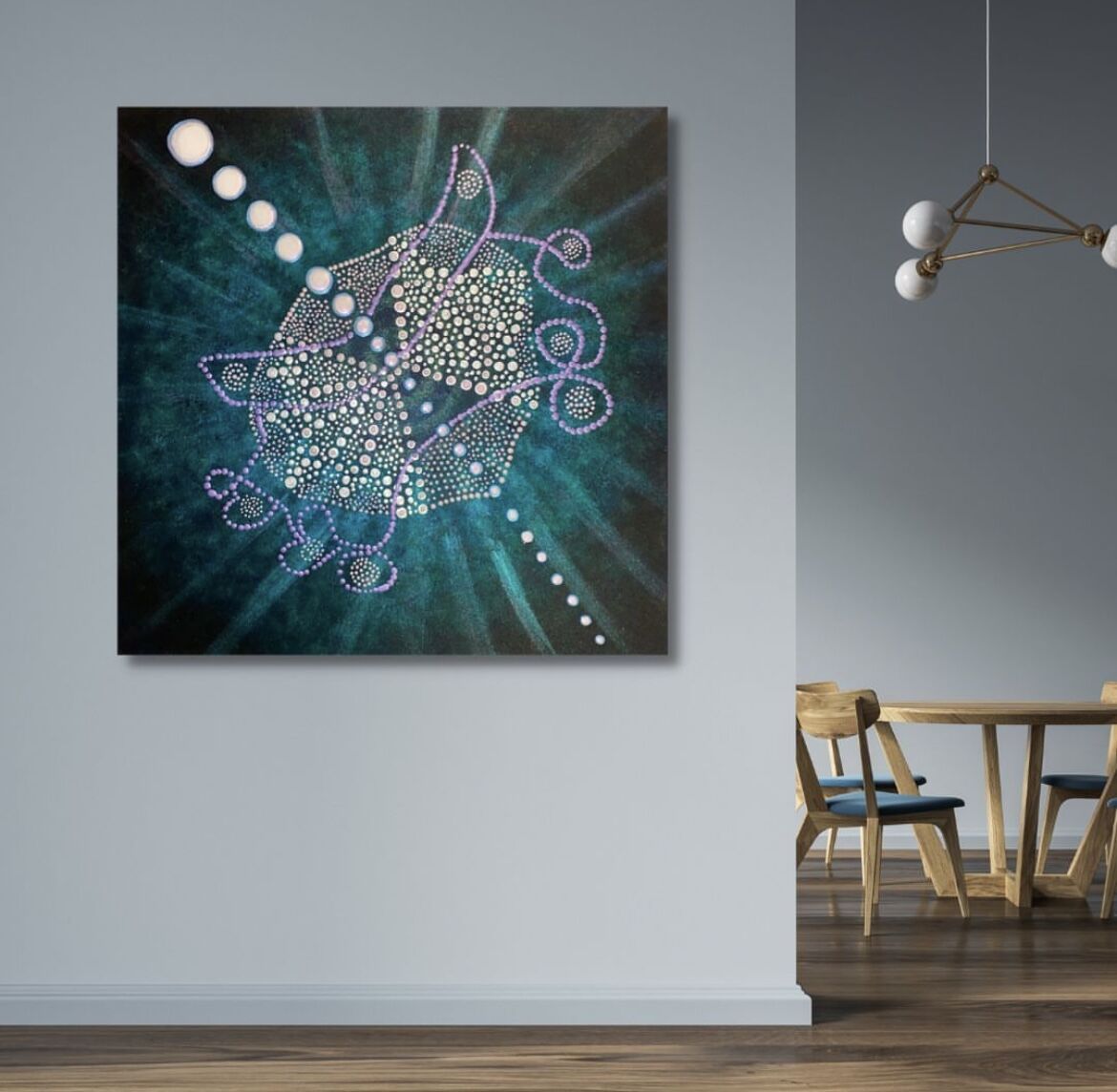 In this artwork I represent the Liberation and Elevation of the Soul from the depths of the unconscious and the concious. The dragonfly symbolizes the change of perspective of self realization, mental and emotional maturity and a deep understanding of the meaning of life. Also I represent the freedom of the mind, with liberation and healing of the two hemispheres of the brain.